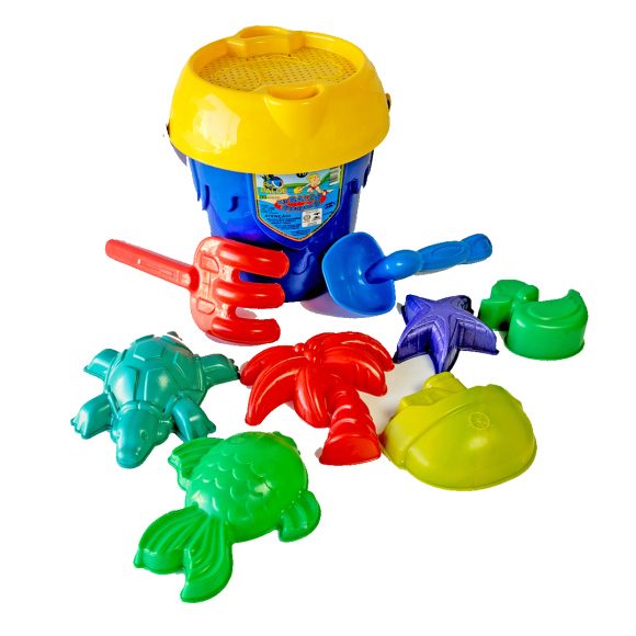 Contém: Baldinho com alça, peneirinha, pazinha, garfinho, e 6